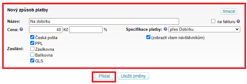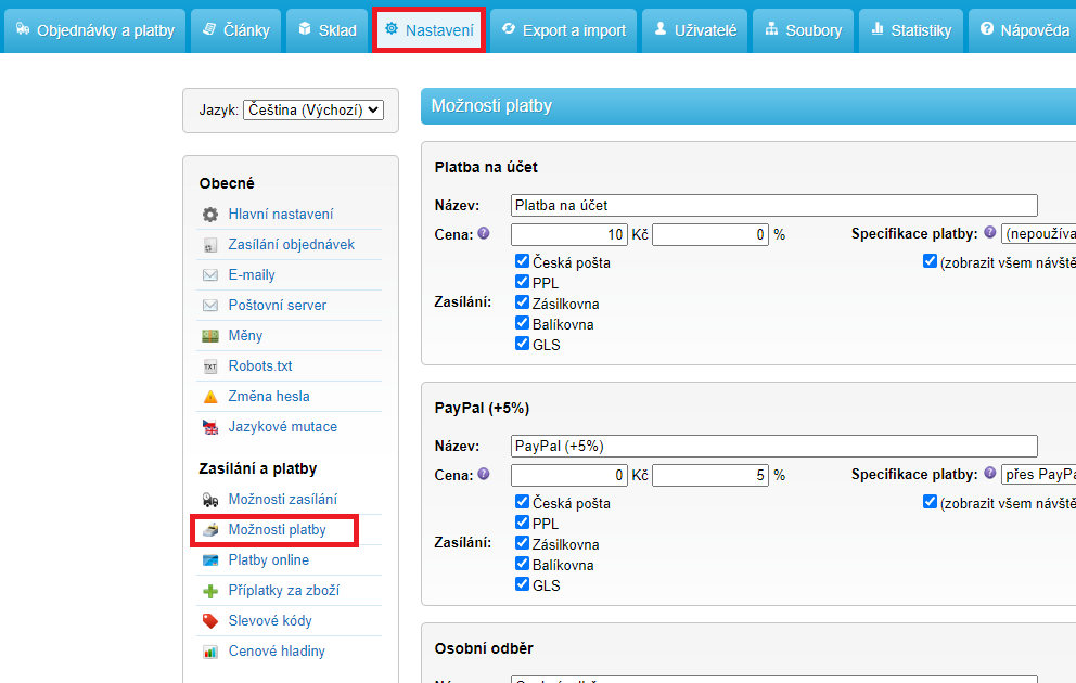 Jak nastavit možnosti plateb
